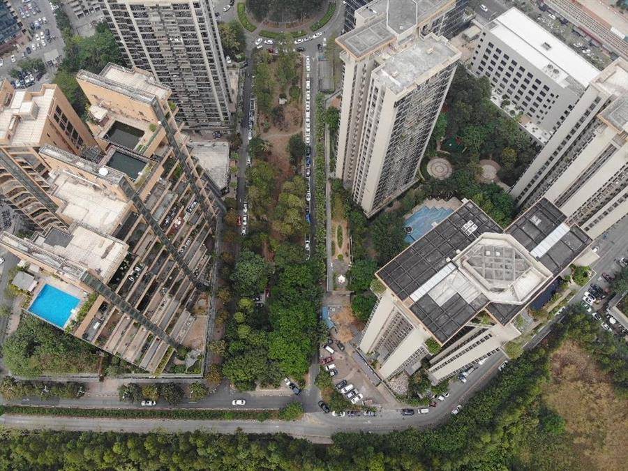 东莞广发片区位于东莞市行政中心东侧,占地约 11 公顷,由 4 个住宅小区、3 栋商业建筑构成,是贯通东莞市中心广场、黄旗山、会展西绿地公共空间廊道的关键组成部分。作为东莞城市公共文化、城市商圈和绿色生态廊道的联系中心,广发片区具备城市公共性与连接性的双重特点,是推动东莞中心城区品质提升的核心区域。