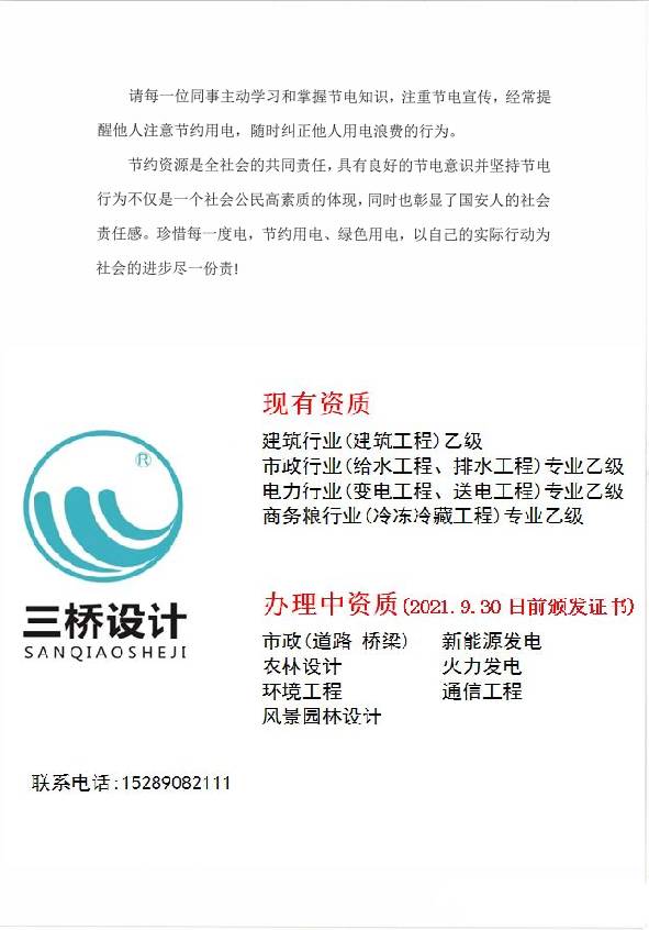 三桥设计院关于节约用电、合理使用电力资源的通知